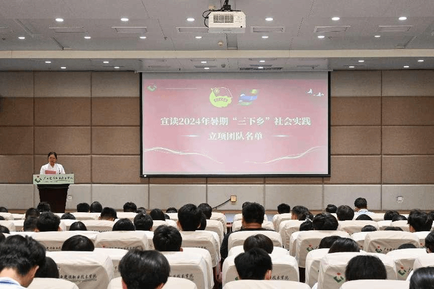 广西建院7月11日讯(文/团委 谢湘宜 黎丹 图/李彤)7月4日,sports在四教一楼报告厅举行2024年大学生暑期“三下乡”社会实践动员大会。校团委书记曾小贵、团委副书记李姿蓉、各二级学院团总支书记、暑期“三下乡”立项团队指导老师及学生代表参加动员大会。会议由黎丹老师主持。