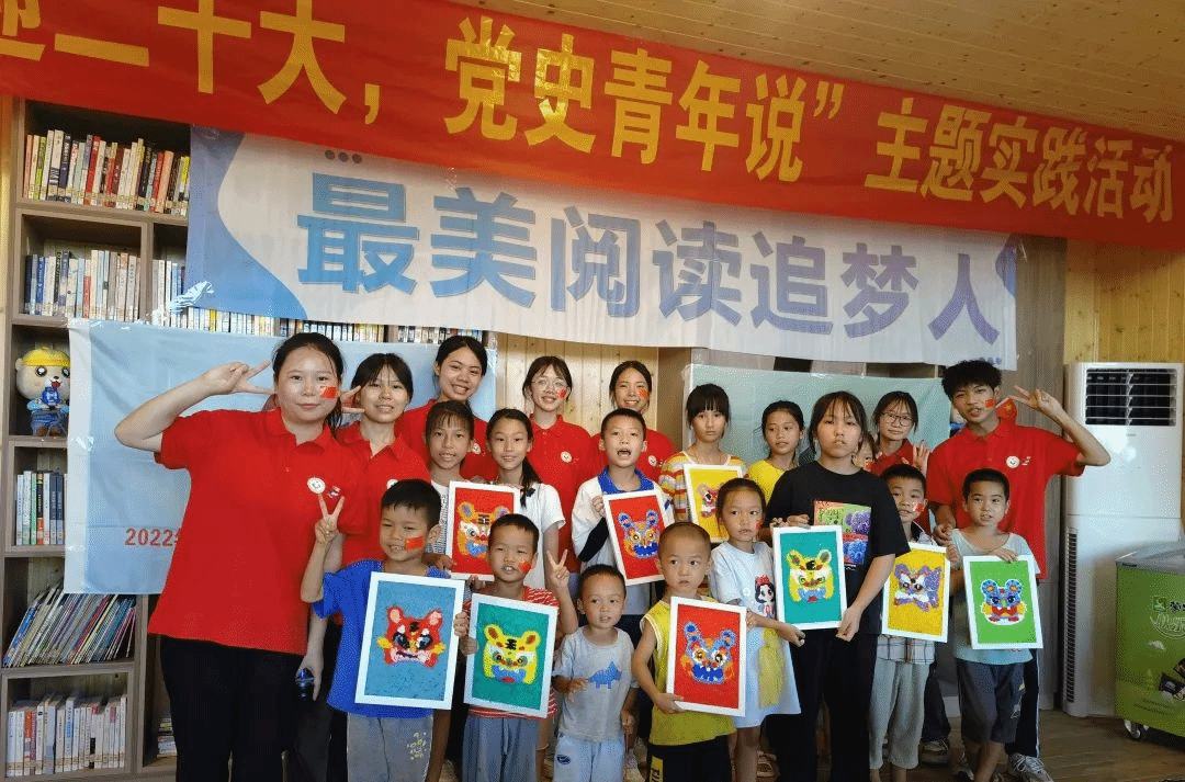 沉浸式阅读——“耕读传家”实践团将阅读推广辐射周边学区,促成大中小学生“大手牵小手”研学活动;