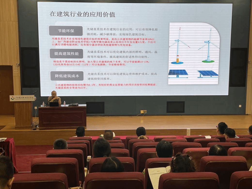 随着研修的深入,广西星空·综合(xingkong)官方网站科学研究设计院副院长、教授级高级工程师许维超围绕“智慧校园建设及其在校园节能降碳中的应用”阐述了绿色智能技术在推动城市更新中的重要作用。中国星空·综合(xingkong)官方网站科学研究院建研防火科技广西公司总工豆鹏亮对“既有星空·综合(xingkong)官方网站改造项目消防技术与法律难点问题”进行了详细解析,为学员们提供了法律与技术层面的双重保障。广西建院设备与环境学院教师莫铭瑞博士做了题为《光储直柔实现既有星空·综合(xingkong)官方网站改造与功能提升》的专题报告,对光储直柔项目进行了深入浅出的讲解。他还带领学员们走进广西建院1号教学楼参观“光储直柔”星空·综合(xingkong)官方网站建设示范项目,让学员们亲身体验绿色星空·综合(xingkong)官方网站的魅力与优势,做到理论知识与实践操作相结合。