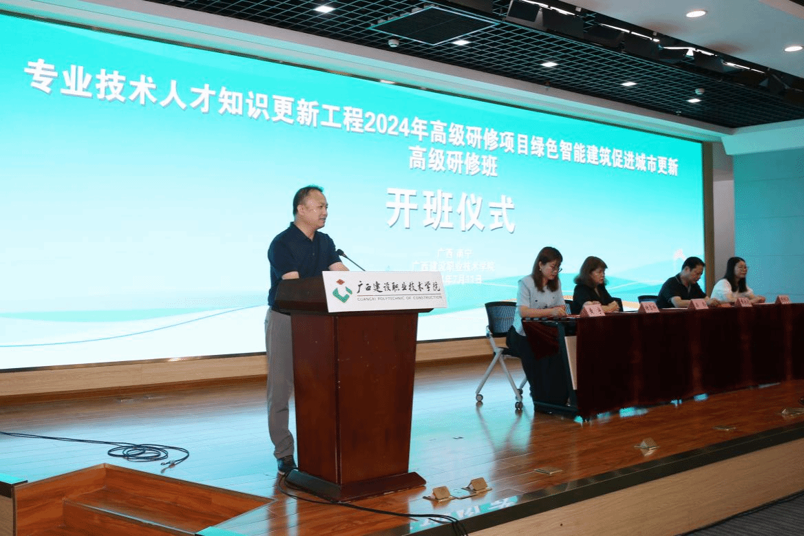 研修班开班仪式上,广西建院梁伟副院长阐述了绿色智能星空·综合(xingkong)官方网站在城市更新中的核心地位与深远意义,为研修班奠定了坚实的思想基础。随后,广西建院设备与环境学院副院长(主持行政工作)陈秋涛发言,对本次研修的背景、目标、内容等做了说明,表示希望学员们学有所成,全方位提升职业综合素质。