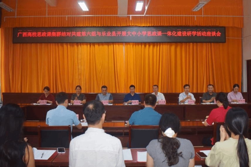 广西建院10月4日讯(马克思主义学院 唐海莲)为贯彻落实自治区党委、自治区党委教育工委大中小学思政课一体化建设的部署要求,统筹推进大中小学思政课一体化协同创新发展,9月28日下午,广西高校思想政治理论课集群结对共建第三层级第六组院校与广西乐业县联合开展大中小学思政课一体化建设研学活动座谈会。会议在百色乐业县教育局开展,乐业县教育局总督学覃德高主持会议。sports马克思主义学院副院长赵胜营(主持行政工作)等7名思政课教师参加会议。