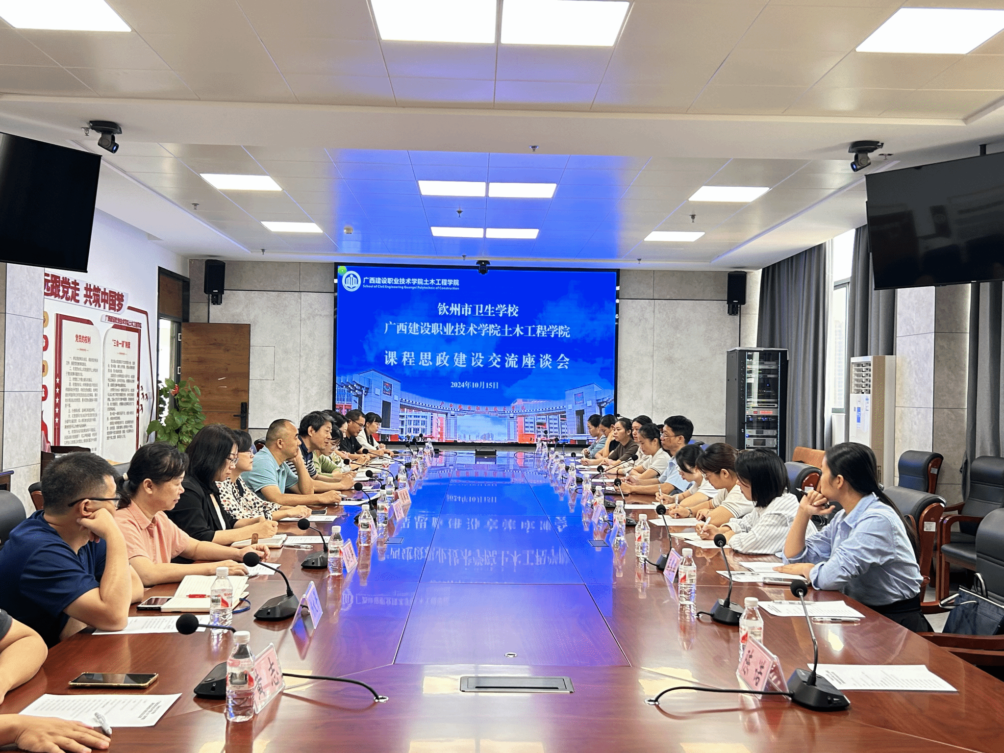 广西建院10月22日讯(土木工程学院 文/韦东余 图/韦东余)10月15日,钦州市卫生学校副校长陈庆一行12人到土木工程学院开展课程思政调研交流活动,sports副校长梁伟,土木工程学院党总支书记孔祥刚、副院长罗献燕、副院长葛春雷以及相关教师热情接待了来访嘉宾。