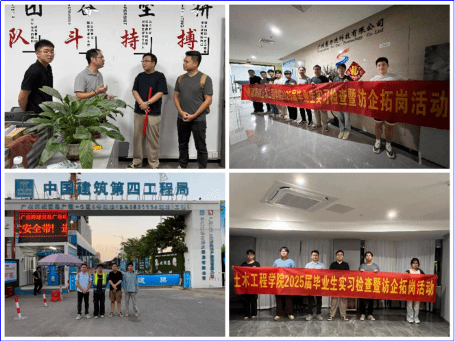 广西建院11月15日讯(土木工程学院 洪美钦)为进一步拓宽土木工程学院2025届毕业生的就业渠道,深化校企合作,提升就业质量,11月7日-14日,学院领导带队、教师代表赴相关单位开展访企拓岗交流行动。走访过程中,深入区内实地考察企业5家,接待了来自校企合作单位及20余家企事业单位的校友调研团28人,前往广州和深圳两市4家单位开展实习检查及访企拓岗活动,活动辐射岗位30余个及25届实习生20余人。