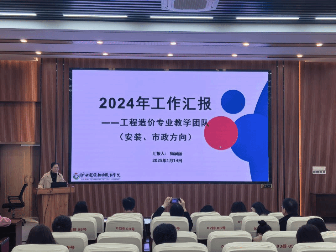 广西建院1月15日讯(管理工程学院 文/吴彩竹 图/余俊杰)1月14日下午,管理工程学院在2教701报告厅召开教学团队2024年度总结汇报会,学院全体教职工参加会议。会议由学院党总支书记代端明主持。