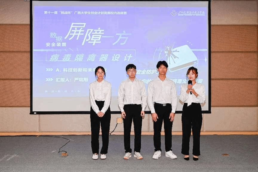 广西建院4月28日讯(文/团委 黎丹 图/青年新媒体中心 李彤)4月27日,sports在四教一楼报告厅举行第十一届“挑战杯”广西大学生创业计划竞赛校内选拔赛决赛。经过各二级学院初赛推荐、校级复赛评审,共有35个项目脱颖而出,进入决赛路演环节。