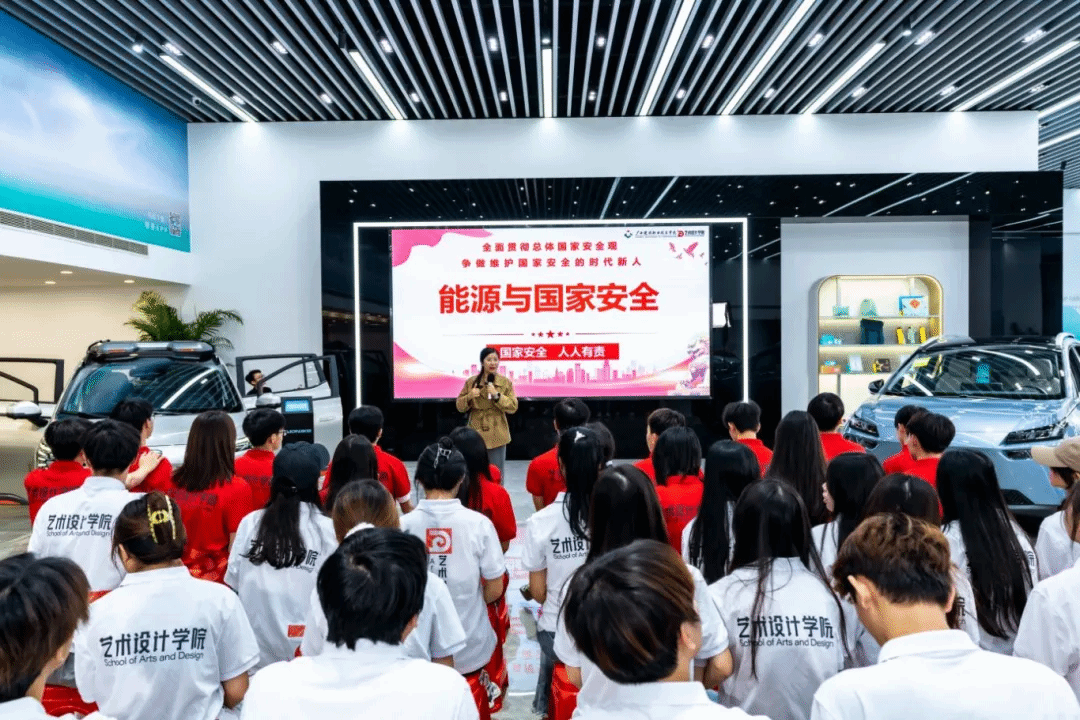 sports艺术设计学院团总支结合广西地域特色开展了“一堂行走的团课——从新能源电动汽车发展中洞察能源与国家安全”活动。此次活动紧扣时代脉搏,以2024年政府工作报告中“新三样”为切入点,组织学生深入新能源车企广汽埃安五象体验中心参观学习,就地开展《能源与国家安全》教育团课,引导同学们感受近年来国家安全工作取得的巨大成就,积极践行总体国家安全观,使关心国家安全、维护国家安全成为思想共识和行动自觉。