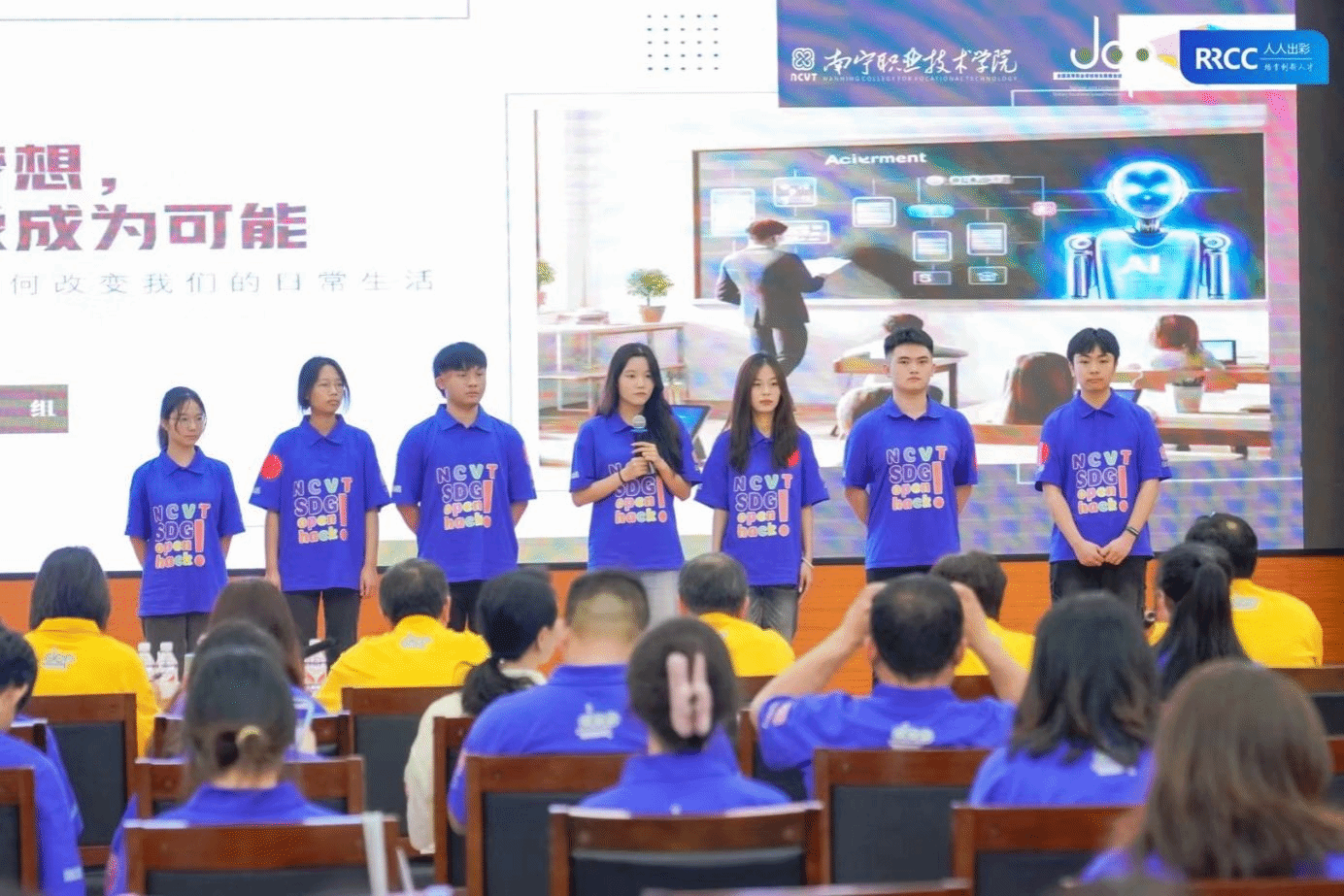 广西建院5月27日讯(文/教务处 陈傲梅 图/艺术设计学院 程舒阳)5月25日至26日,由全国高等职业学校校长联席会议指导,全国高等职业学校校长联席会议双创教育专委会主办的第三届“人人出彩杯”SDG开放创新马拉松在南宁举行,共有来自全国19所高职院校34支师生创新团队参与角逐。