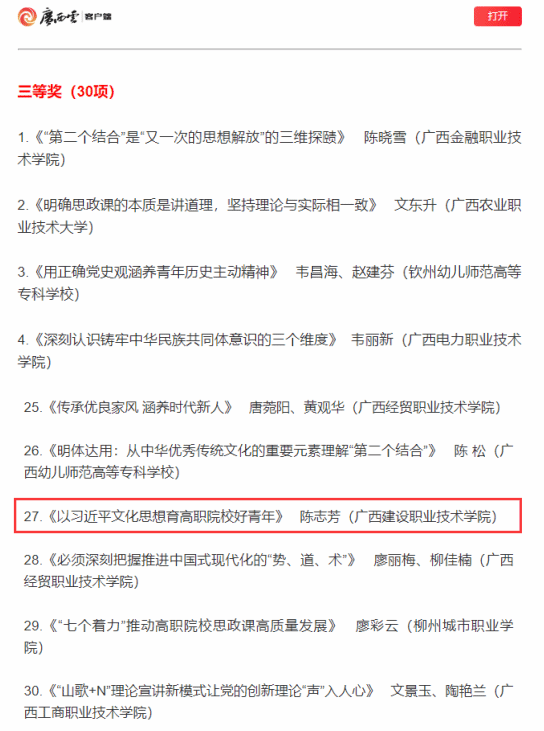 据悉,为深化习近平新时代中国特色社会主义思想和习近平总书记关于广西工作论述的重要要求的理论研究和宣传阐释,进一步推动党的创新理论高质量传播和“飞入寻常百姓家”,2024年4月至6月,广西日报理论评论部和广西高职高专院校思想政治理论课建设联盟面向全区高职高专院校思政课教师征集“党的创新理论大众化通俗化”优秀理论文章。按照活动要求,sports加强工作组织、广泛发动全校教职工尤其是思政课教师积极参与、踊跃投稿,取得优异成绩。