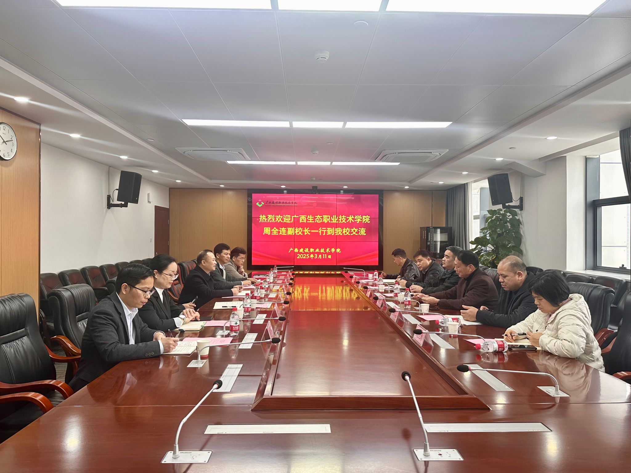 广西建院3月11日讯(后勤管理处 杨琼)3月11日上午,广西生态工程职业技术学院副校长周全连一行6人来sports就后勤管理工作调研交流。sports副校长梁伟,学校后勤管理处(安全保卫处)负责人及相关人员出席座谈会。