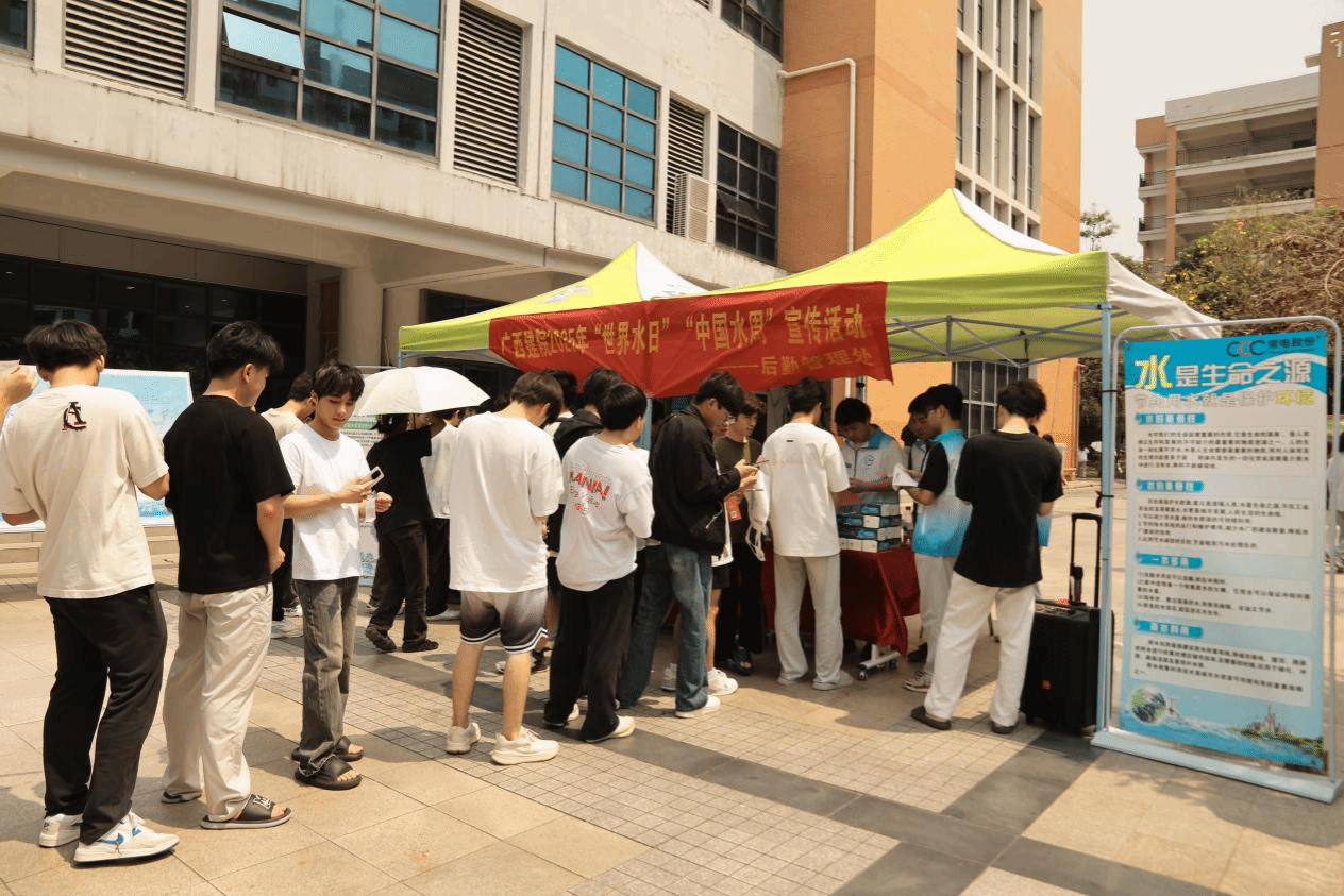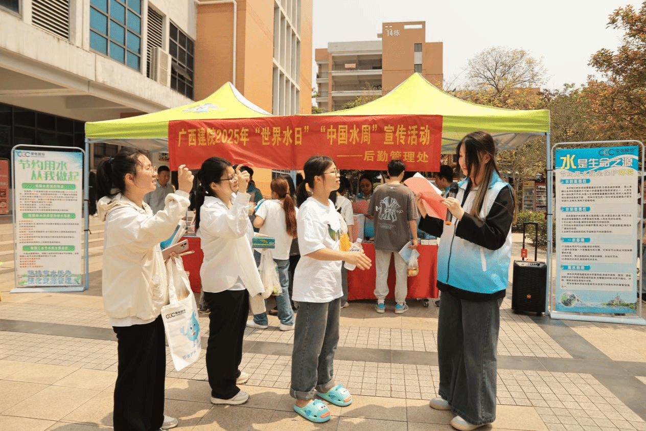 广西建院3月28日讯(后勤管理处 唐尚芳)为引导全校师生牢固树立依法治水意识,3月27日,sports后勤管理处(安全保卫处)在学校一食堂广场开展2025年“世界水日”“中国水周”节水宣传系列活动。学校副校长梁伟,后勤管理处领导出席活动。