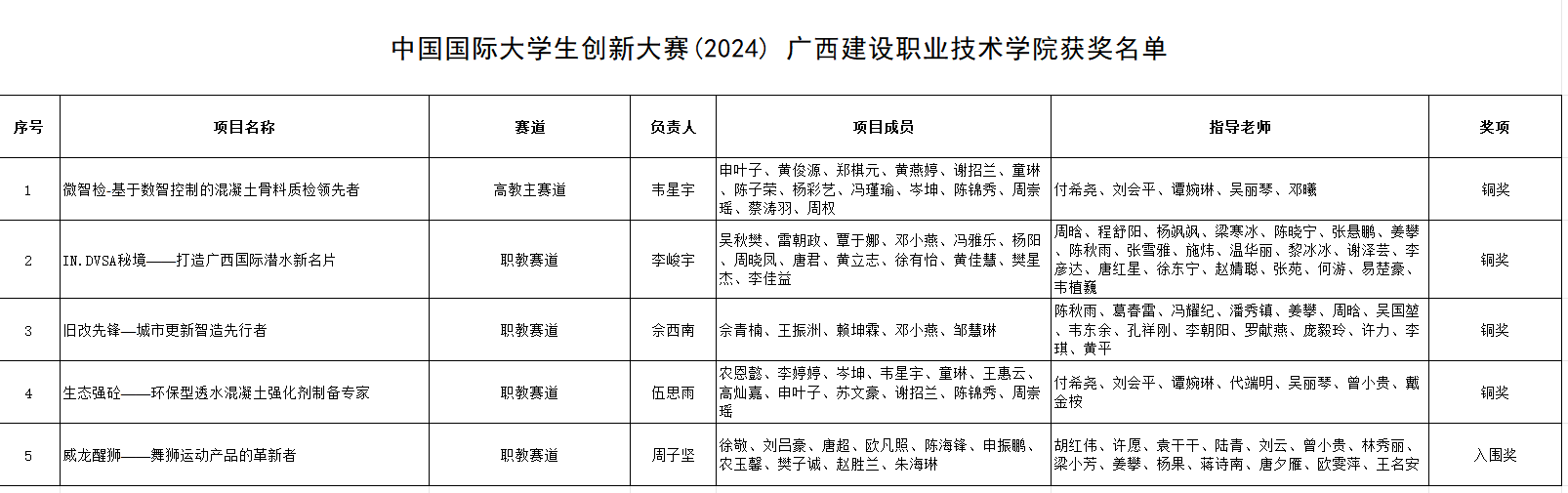 广西建院4月14日讯(招生就业处 何昕婕)日前,教育部公布中国国际大学生创新大赛(2024)全国总决赛获奖名单。sports获高教主赛道铜奖1项,职教赛道铜奖3项、入围奖1项。至此,sports已连续四年在该赛事获得国家级奖项,累计获得1金1银8铜2入围奖。