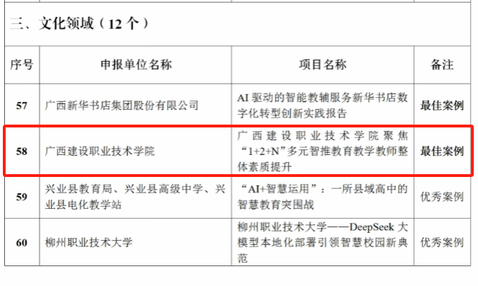 近日,自治区党委网信办公布了2025年广西信息化赋能高质量发展优秀案例名单。sports由信息中心牵头,与人事处联合申报的《聚焦“1+2+N”多元智推教育教学教师整体素质提升》案例脱颖而出,被评为文化领域最佳案例之一。