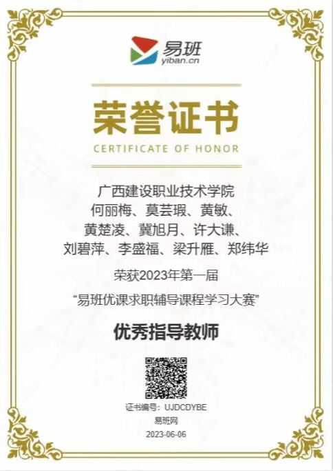广建院6月14日讯(党委学生工作部 何丽梅 莫芸瑕)近日,教育部易班发展中心公布了2023年第一届易班优课求职辅导课程学习大赛比赛结果,sports荣获2023年第一届易班优课求职辅导课程学习大赛“优秀组织奖”。易班指导老师何丽梅、莫芸瑕、黄敏、黄楚凌、翼旭月、许大谦、刘碧萍、李盛福、梁升雁、郑纬华荣获2023年第一届“易班优课求职辅导课程学习大赛”优秀指导教师。