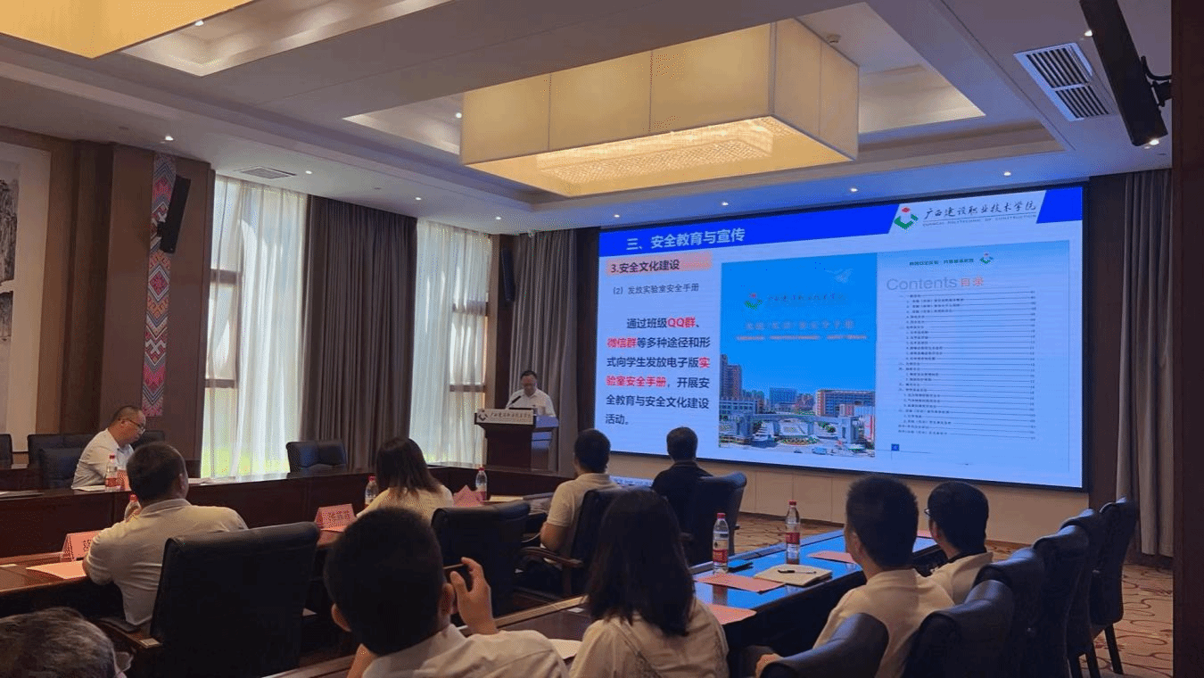广西建院7月7日讯(教务处 文/ 陆耀敏 图/雷雨田)7月6日上午,由广西电力职业技术学院副院长湛年远为组长的自治区教育厅检查组一行4人莅临sports开展实验室安全实地检查指导工作。学校副校长梁伟出席会议并致辞,会议由教务处处长付春松主持,各二级学院分管实训副院长、实训干事等相关工作人员参加了会议。