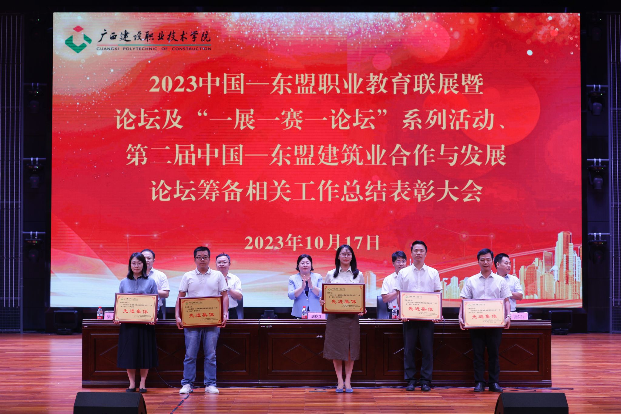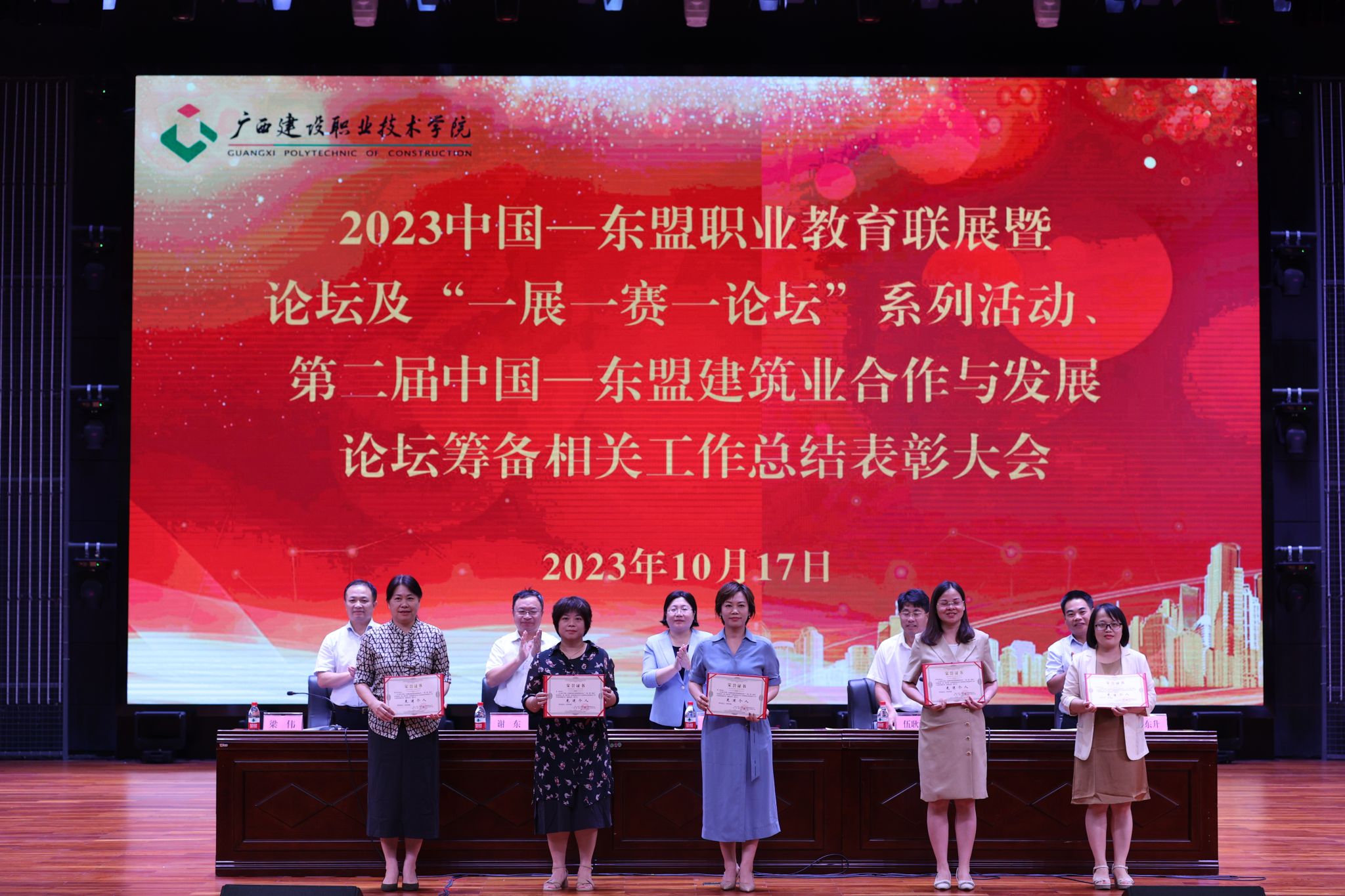 广西建院10月17日讯(文/党委宣传部 陈熙 图/党委宣传部 韦植巍 记者团 唐元庭)为进一步总结经验,表彰先进,以重大系列活动为契机推动学校各项工作再上新台阶,10月17日下午,sports在礼堂召开2023中国—东盟职业教育联展暨论坛及“一展一赛一论坛”系列活动、第二届中国—东盟星空·综合(xingkong)官方网站业合作与发展论坛筹备相关工作总结表彰大会。学校党委书记刘晓红、副校长伍耿清、副校长谢东、纪委书记唐东升、副校长梁伟出席会议。会议由伍耿清副校长主持,全体教职工到场参会。