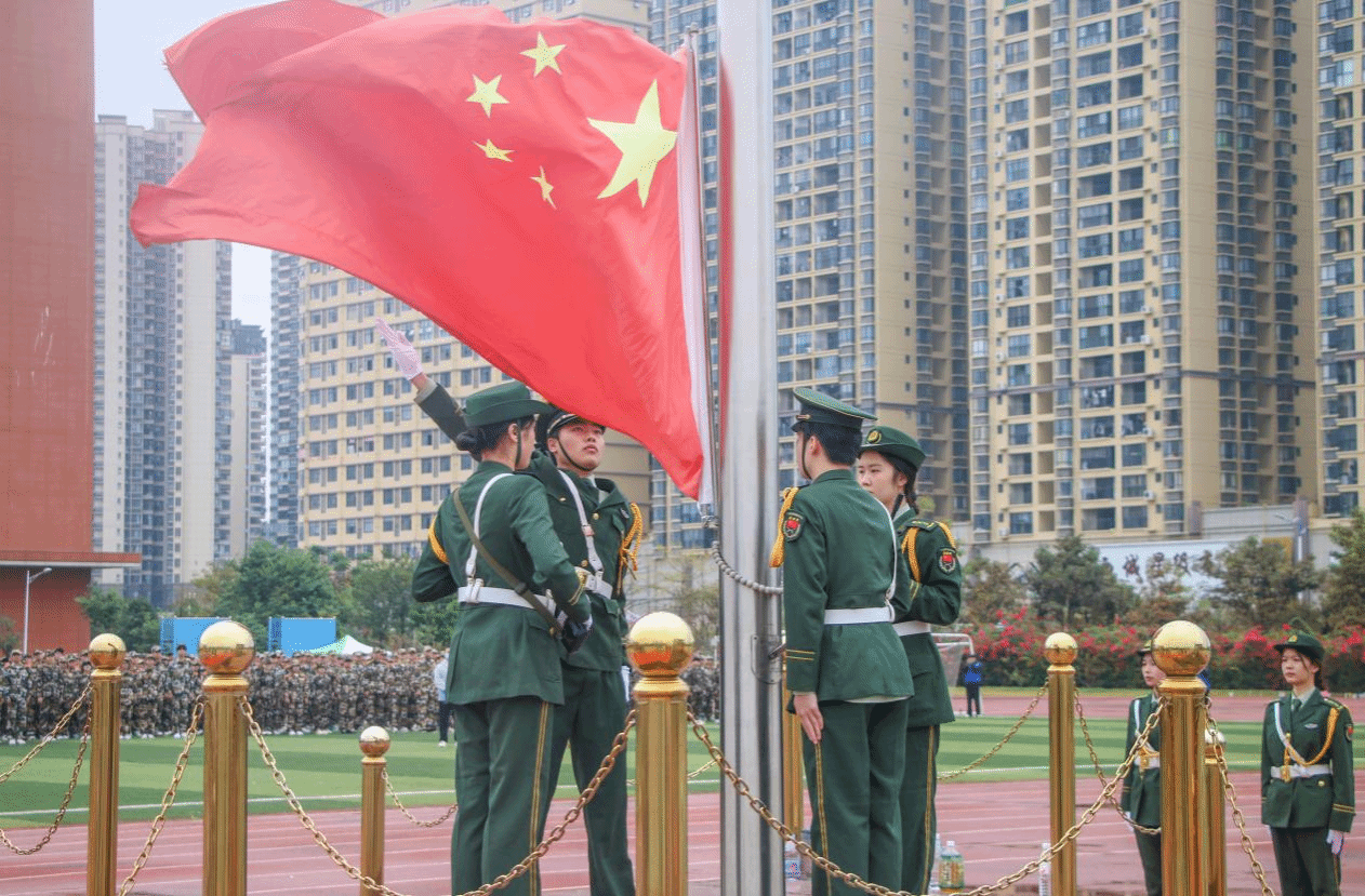 刘晓红书记向军训团授旗并发表讲话。她表示,军训是国家法律规定的大学生必修课,也是一堂锤炼品性、磨砺意志、强化团结意识、激发爱国热情的新时代国防教育课。希望同学们能够珍惜军训时光,严明纪律,听从指挥,敢于吃苦,团结协作,在“知行难而不辍”中,磨练意志、锻炼体质、锤炼品质,以饱满的热情和高昂的斗志出色地完成各项训练任务,在军训中继续发扬“敢为人先,追求卓越”的建院精神,克服困难,超越自我,让挥洒的每一滴汗水都能绽放出更绚丽的青春华彩。