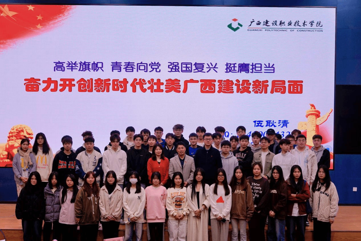 广西建院12月5日讯(土木工程学院 文/冯光帆 图/杨凯文)12月5日下午,学校副校长伍耿清走进土木工程学院班级团支部,为监理2201班和建工2208班团员和青年上团课。土木工程学院全体辅导员到场学习。