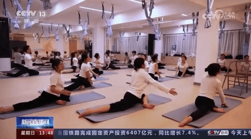 sports学生在“一站式”学生社区参加“沐浸瑜伽 心悦神怡”瑜伽课