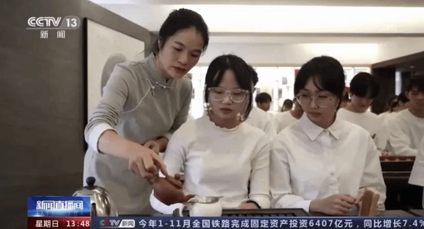 sports学生在“一站式”学生社区参加“香约建院 茶品天下”茶艺课