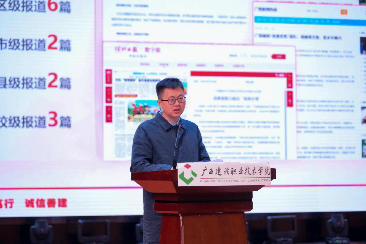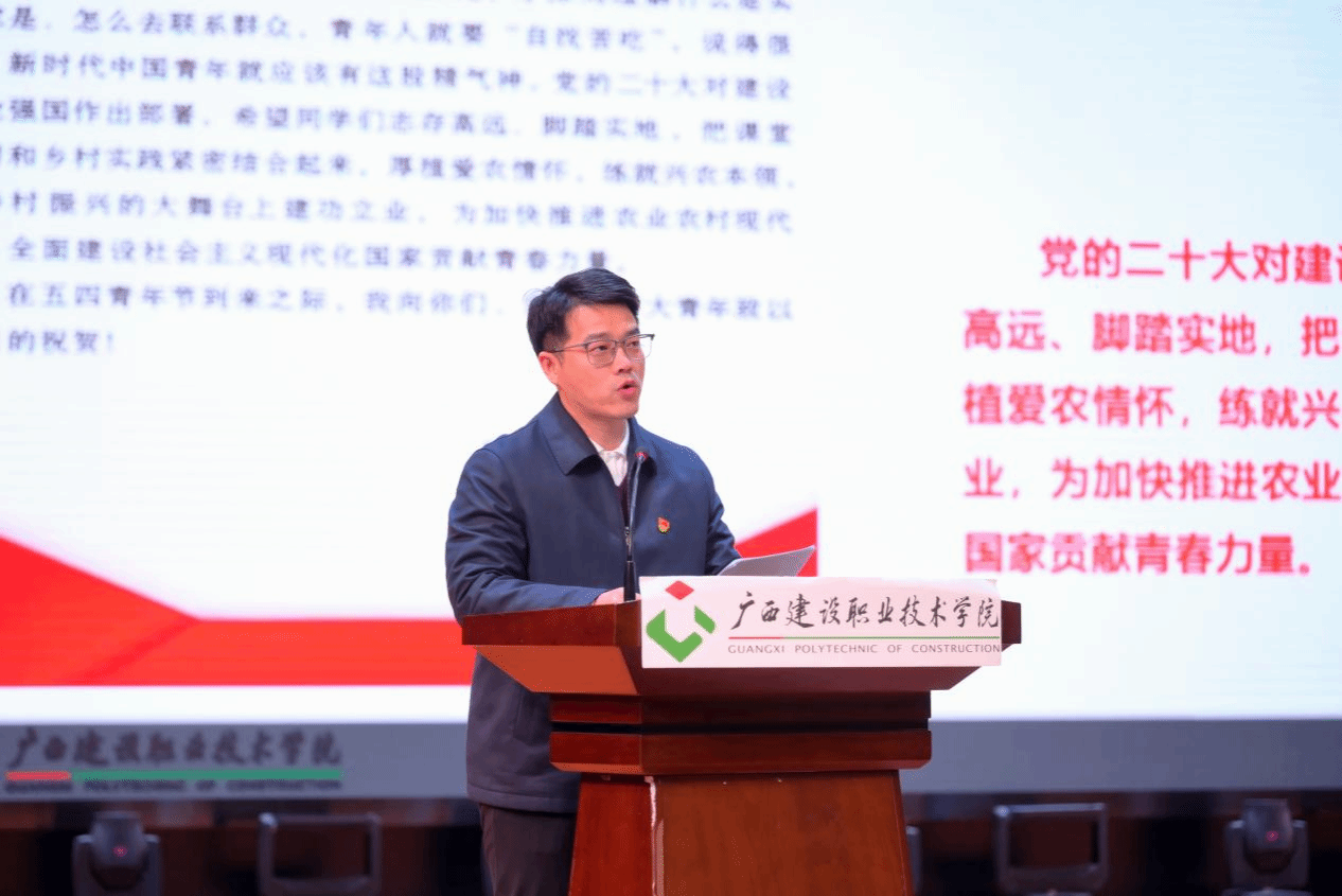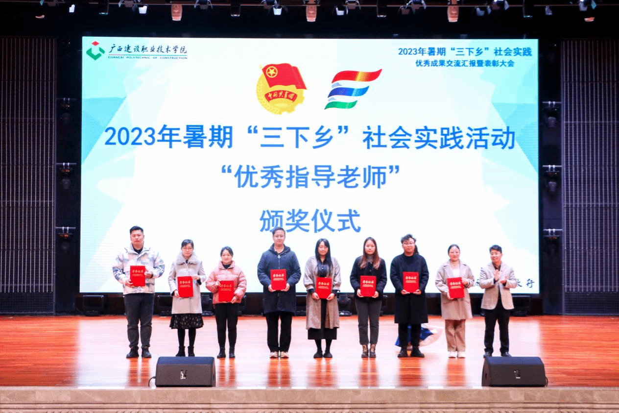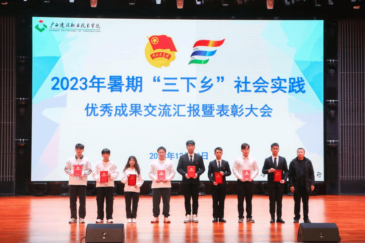 广西建院12月21日讯(团委 文/宋丽 周晓凤 图/覃小怡 谢梦莹)为总结暑期社会实践活动经验,巩固实践教育成果,树立榜样,表彰先进,进一步引导广大青年学生把课堂学习和乡村实践紧密结合起来,sports团委于12月19日下午,在学校礼堂举行2023年暑期“三下乡”社会实践优秀成果交流汇报暨表彰大会。学校副校长伍耿清,校团委书记、学生工作部副部长曾小贵,各二级学院团总支书记出席大会,校团委全体老师、各实践团队指导老师代表及各二级学院师生代表参加本次大会。