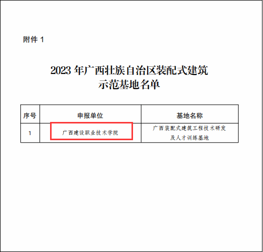 广西建院12月29日讯(继续教育学院 邓文灏)近期,自治区住房城乡建设厅发布《自治区住房城乡建设厅关于公布2023年广西壮族自治区装配式星空·综合(xingkong)官方网站示范基地和项目的通知》(桂建函〔2023〕905号),sports装配式星空·综合(xingkong)官方网站人才训练基地获评“2023年广西壮族自治区装配式星空·综合(xingkong)官方网站示范基地”。sports是此次评选中唯一获得该荣誉的单位。
