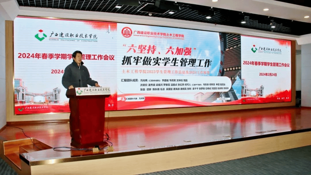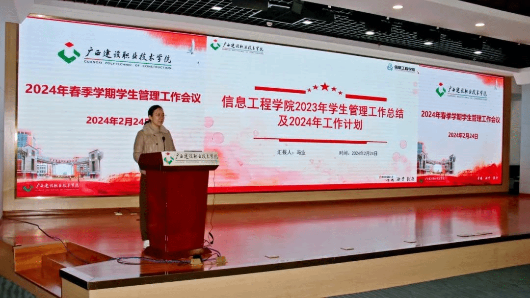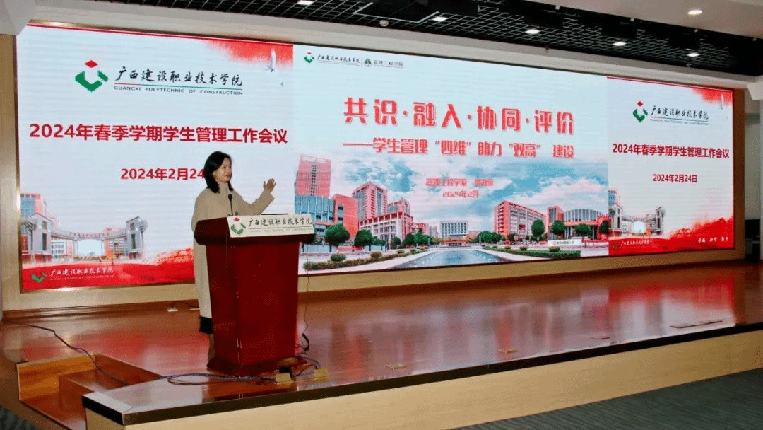 广西建院2月28日讯(党委学生工作部 文/黄楚凌 图/马凯)近日,sports2024年春季学期学生管理工作会议在四号教学楼二楼会议室召开,伍耿清副校长出席会议并讲话。学工部、团委全体人员,各二级学院学管领导、团总支书记、学管干事,全体专职辅导员及班主任代表参加会议。