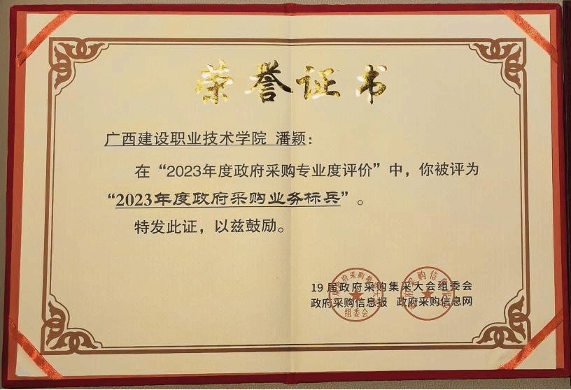 广西建院3月1日讯(资产管理处 文/赵季存 图/潘颖)2月28日至3月1日,第19届政府采购集采大会在北京召开。大会公布了“2023年度政府采购专业度评价”结果,sports获评“2023年度全国政府采购先进高校”,资产管理处副处长潘颖被评为“2023年度政府采购业务标兵”。