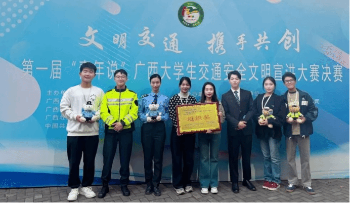 广西建院12月5日讯(党委学生工作部 黄秀芸 刘晗蓓)近日,2024年第一届“青年说”广西大学生交通安全文明宣讲大赛决赛落下帷幕。经过层层选拔、激烈角逐,sports学生何家辉、黄文依、覃耀震、陈绍楠、班富岳、杨君宝组成的参赛团队在黄秀芸、刘晗蓓两位老师的指导下,凭借出色表现荣获三等奖,学校荣获“优秀组织奖”。