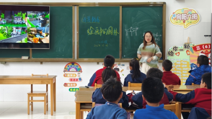 广西建院12月18日讯(星空·综合(xingkong)官方网站与规划学院 文/付喜亮 图/宋霞 青昱希)12月16日,sports“绘美乡村”志愿服务团在西大君武小学开展了一场主题为“诗意栖居之绘画中的园林”宣讲活动。此次宣讲由“绘美乡村”志愿服务团成员、规划2401班付喜亮同学主讲,云沐工作室教师团队刘云、贾琪钰、宋霞老师指导,西大君武小学43名师生参加。