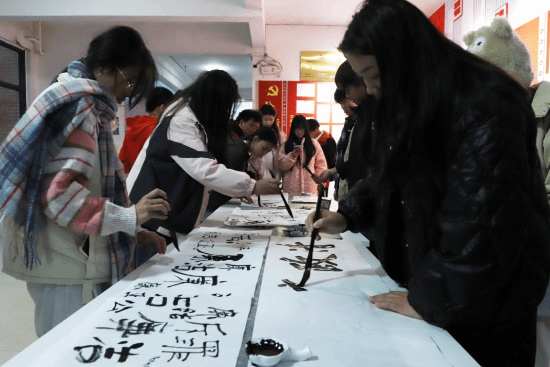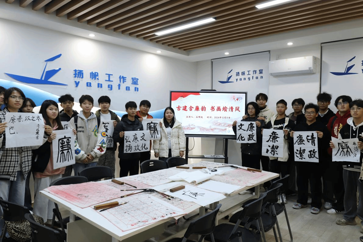 广西建院12月22日讯(土木工程学院讯 文/石明成 图/赵子丞)为进一步弘扬廉洁精神,增强同学们的廉洁意识,近日,土木工程学院在扬帆工作室、党建工作室举办了以“古建含廉韵,书画绘清风”为主题的书法体验活动。本次活动由土木工程学院团总支主办,土木工程学院学生第三党支部承办,活动吸引了近200名师生参与。