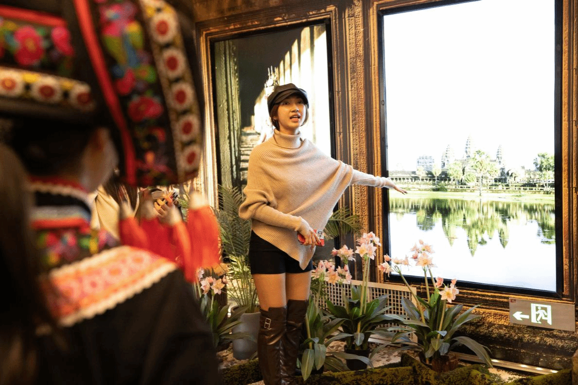 在柬埔寨馆的“岁月园林”中,来自柬埔寨的棉金芳同学满怀热情地向大家展示了她的家乡特色——吴哥窟,并热情邀请大家前往她的家乡游览。