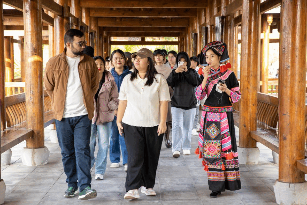 留学生们在廊中驻足,聆听着中国学生对风雨桥历史和文化的介绍,他们对这种将自然景观与人文艺术完美结合的星空·综合(xingkong)官方网站形式表示了极大的兴趣。