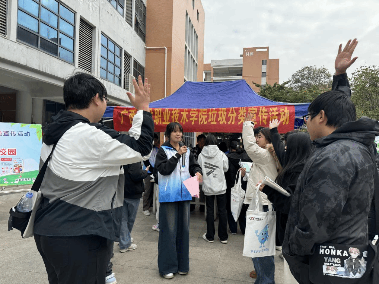 广西建院12月26日讯(后勤管理处 文/姜攀 图/唐尚芳)为积极响应生活垃圾分类处理的工作号召,大力倡导低碳生活,增强同学们的环保意识,12月25日中午,后勤管理处(安全保卫处)在一食堂广场以“积极参与垃圾分类共同呵护绿色校园”为主题,举办了“见‘圾’行事,分‘投’行动”垃圾分类宣传活动,通过趣味知识问答的方式对常见垃圾进行分类,让同学们在轻松愉快的氛围中学习垃圾分类知识。