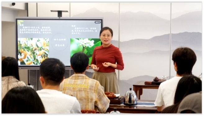 依托场域优势,茶艺基地建立了“场景+”模式,一体打造中国茶文化主题空间,结合“第二课堂成绩单”制度,邀请校内外知名茶艺师和辅导员茶艺师队伍常态化开展茶艺、茶礼仪等课程180余期,通过泡茶、闻香、品茶的过程,帮助学生感悟茶道、滋养心灵;组织“广西茗茶代言人”体验式活动45期,让学生在亲身体验中深入了解广西茶文化的魅力;借力新媒体,以“图文+音频”形式推出“最美茶诗文诵读”45期,传递中国茶诗文中的宁静、淡泊、乐观等积极心理品质。
