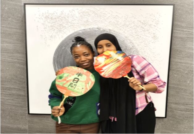 国际留学生参加“漆彩光辉·墨香风华”漆扇体验活动