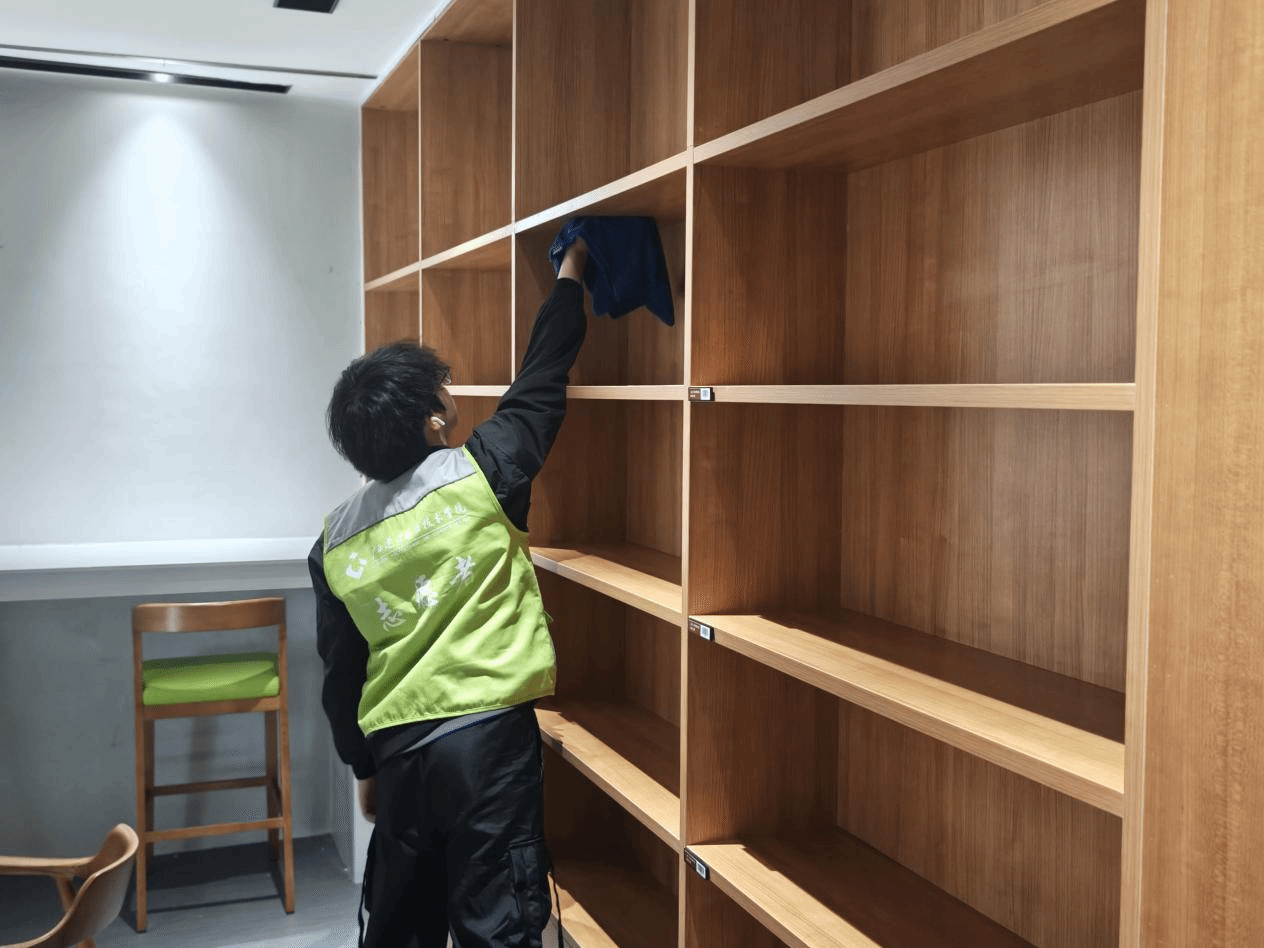 传承雷锋精神,共筑书香建院。学校图书馆内,志愿者们身着统一的绿色马甲,分工明确,有条不紊地忙碌着。有的志愿者专注地整理书架,按照图书编号仔细排列,让书籍摆放得整齐有序,方便读者查找借阅;有的志愿者则拿着抹布,认真擦拭书架,不放过任何一个角落,为图书馆营造出干净整洁的阅读环境。这些志愿者们不怕脏、不怕累,用自己的汗水和努力,为图书馆的正常运转贡献力量。