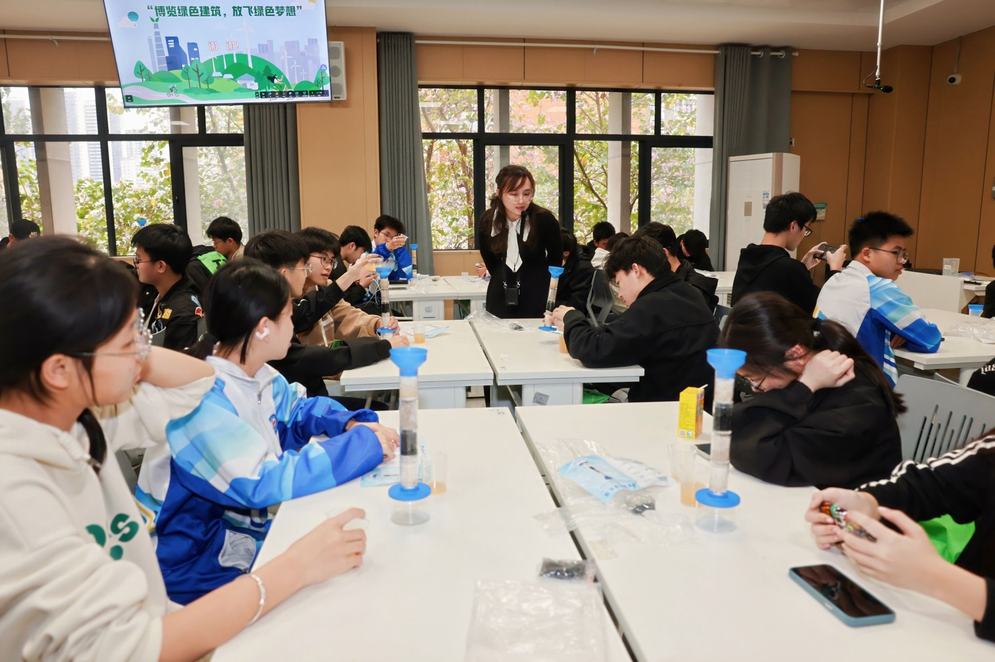 港北高中学生进行净水处理小实验
