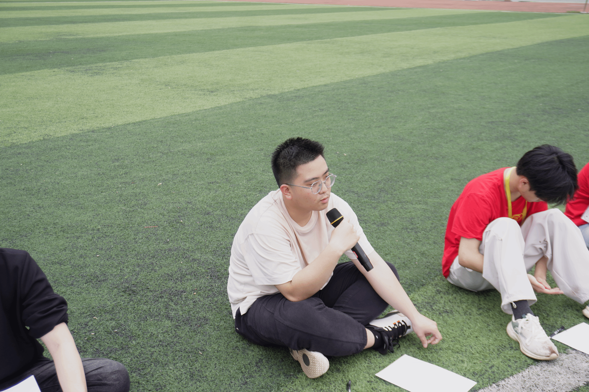 跑步结束后,胡老师带领同学们进行放松运动,随后便进入目标拆解辅导环节。胡老师形象地比喻道:“咱们的职业目标甚至人生目标,就好比这5公里的长跑,只要把它拆解成一个个100米或者300米的小段,一段一段去完成,就能成功抵达终点,也就是把长期目标精准拆分成一个个切实可行的短期目标,让自己能更清晰地聚焦目标。”接着,胡老师让同学们以操场为模拟场景,绘制自己的学业生涯目标图,拆解学业目标。同学们纷纷表示,这种把宏大目标细化成小目标的方法,让未来的规划更加清晰、更具可操作性。