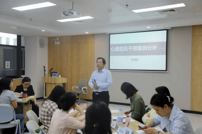 在为期两天的培训中,赖海雄老师结合多年高校心理健康教育工作经验,通过真实案例剖析、情景模拟与互动研讨,系统讲解危机干预全流程中的关键环节与操作规范。参训教师通过理论学习、案例研讨和实操演练,深入掌握了心理危机识别评估、家校沟通策略、危机事件后续管理等核心技能。