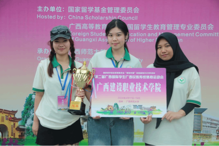 广西建院4月23日讯(国交中心 张龄尹)4月17日—19日,广西区内30所高校的300多名留学生齐聚桂林,共同参加由国家留学基金管理委员会、广西高等教育学会外国留学生教育管理专业委员会主办的第二届广西高校国际学生民族传统体育运动会。sports来自印度尼西亚、老挝、越南、柬埔寨的24名国际学生代表参赛,与来自不同国家、不同文化背景的运动员们同场竞技,体验广西优秀传统体育运动的独特魅力。