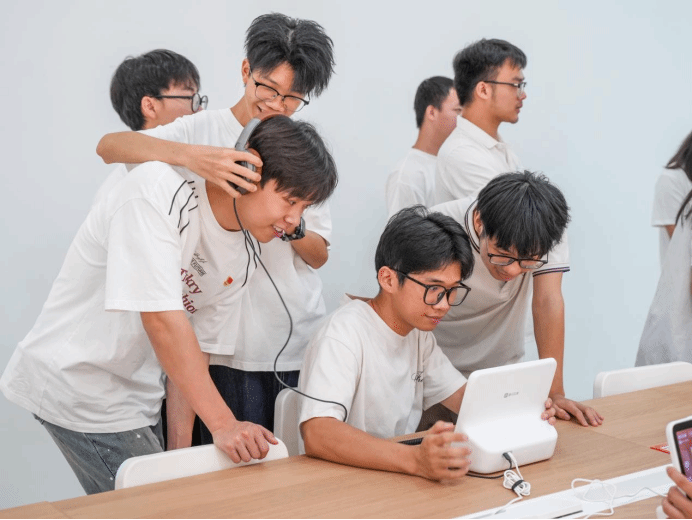 活动中,师生们戴上专业设备,借助LBE(基于定位的虚拟现实)技术瞬间“穿越”回1921年的上海,置身于那个风云激荡的年代。他们真切地感受着中共一大召开的时代背景与现场氛围,沿着历史的脉络探寻红色故事,感受代表们将青春理想化作寻求救国救民真理的信念,感受他们在上海开天辟地、在风雨如磐中担起民族救亡图存重任的担当,深刻领悟伟大的建党精神,全身心沉浸在“伟大开端”的历史情境之中。