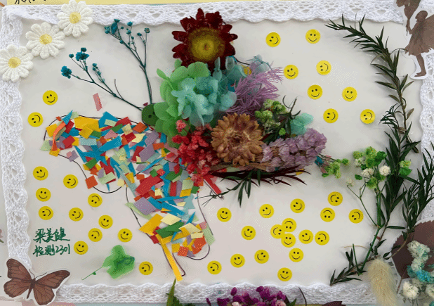 “AI能量坊”则为学生们提供了动手实践与创意表达的舞台。参与者利用AI设计助手进行数字绘画,将内心的情感与想象跃然“屏”上;随后通过手绘还原、创意拼贴等形式进行二次创作,实现科技与艺术的完美交融。活动现场特设的“能量充电墙”,集中展示学生们创作的拼贴画作品,吸引大家浏览驻足,感受彼此间的心灵共鸣与精神鼓舞。