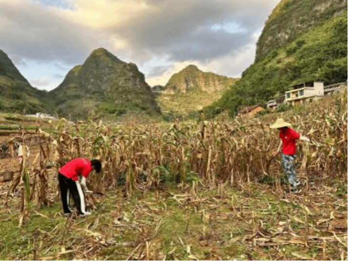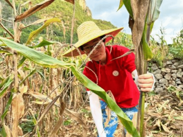 墙绘落成,队员们的服务热情并未停歇。得知部分农户因劳力短缺,玉米地的秸秆尚未清理,团队负责人当即决定“画里的初心,要落到田埂上。”队员们拿起镰刀,走进玉米地。烈日下,他们弯腰挥汗,收割秸秆。“这些孩子真能吃苦!”村民们的称赞是对他们最好的肯定。