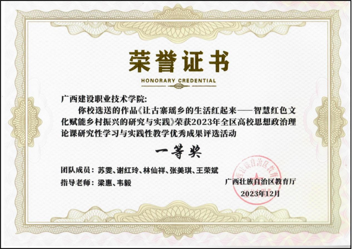 团队教师参加2024年全区高校建设“壮美广西”系列思政课“示范课堂”活动获一等奖1项、二等奖1项、三等奖2项