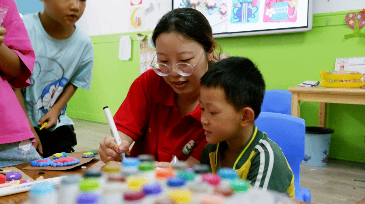 美育是审美教育、情操教育、心灵教育,也是丰富想象力和培养创新意识的教育,能提升审美素养、陶冶情操、温润心灵、激发创新创造活力。在实践期间,“绘美乡村”实践团队利用每日下午时间,在六寨镇苗苗幼儿园开展美育体验课堂。在课堂中,实践团队员们讲解美育知识,引导小朋友们发挥自己的想象力,利用轻质黏土,制作手工作品。