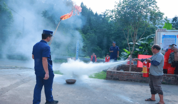 组织村民开展消防灭火器演练