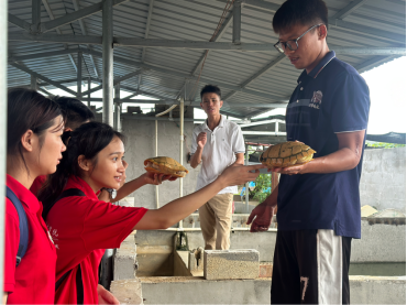 实践团成员参与农产品收割及特殊龟种的护理喂养