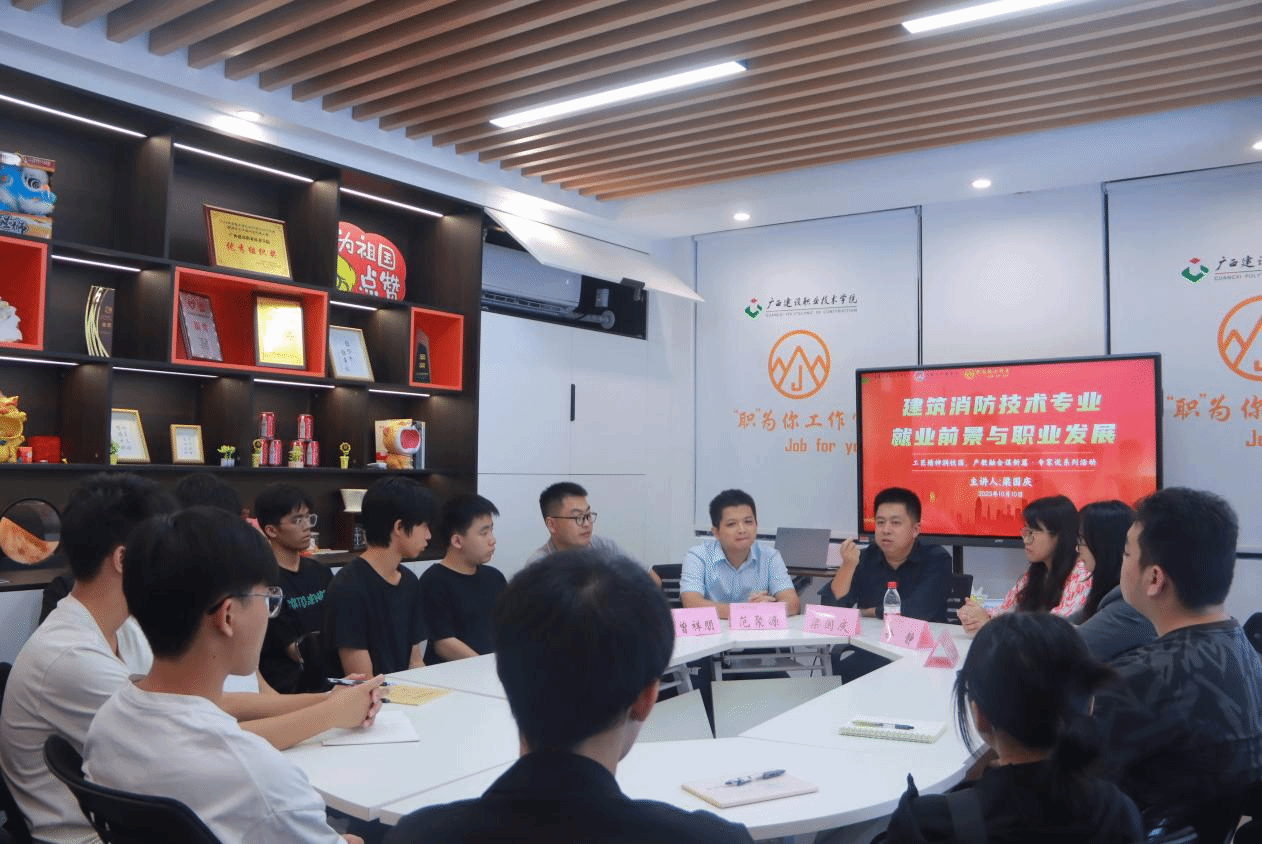 广西建院10月11日讯(设备与环境学院文/曾祥朋 徐静 图/黄莹静 唐妹芬)为引导学生了解星空·综合(xingkong)官方网站消防技术专业的就业前景与发展方向,进一步提高职业规划意识,10月10日,由“职”为你工作室组织的“工匠精神润校园·产教融合谋新篇”专家说系列活动《星空·综合(xingkong)官方网站消防技术专业就业前景与职业发展》讲座在sports四教一楼学术报告厅举办,并在“职”为你工作室举行了座谈会。来自sports多个专业的22级、23级学生及设备与环境学院教师、辅导员等300余人参加了此次学术交流活动。