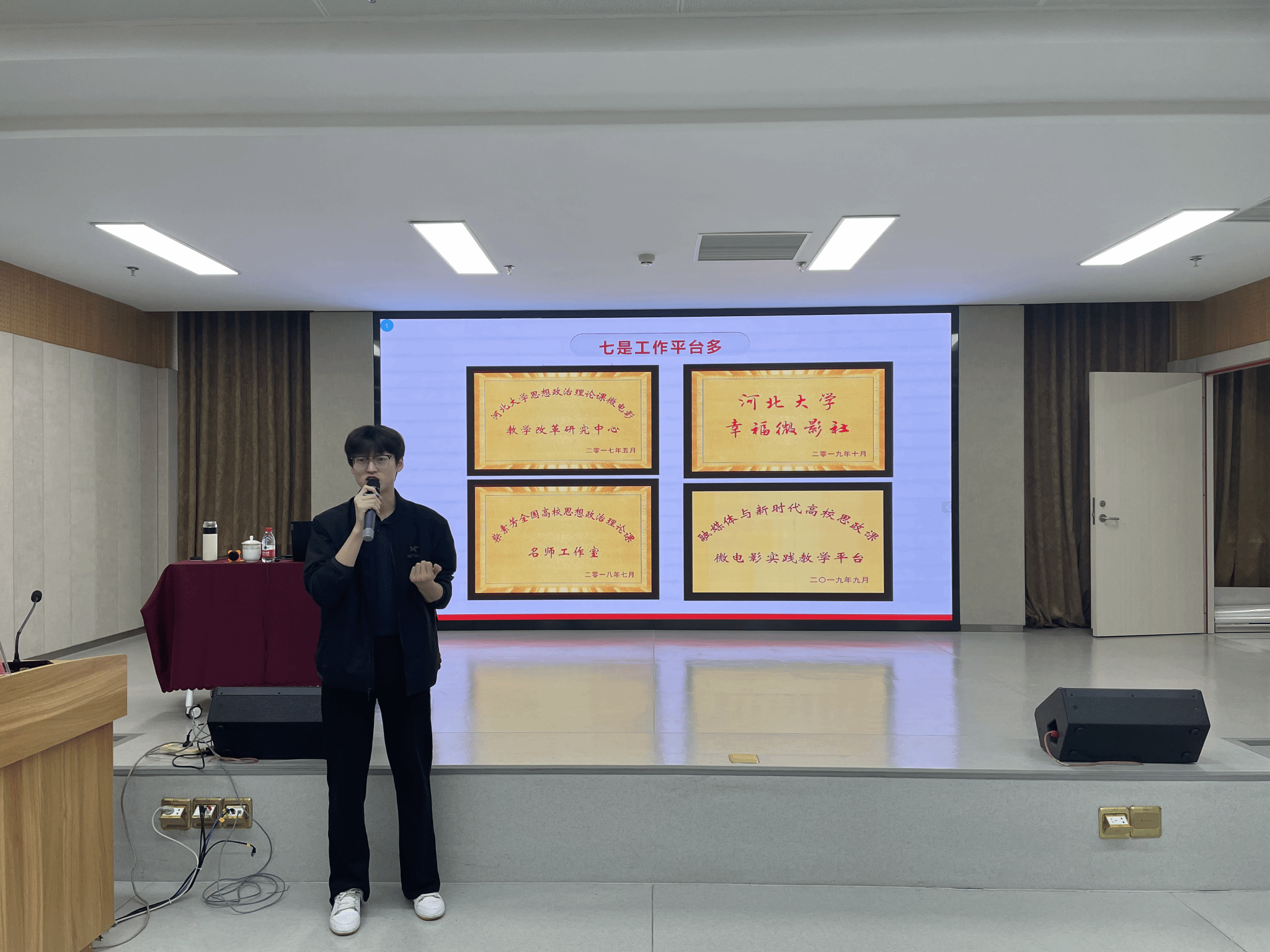 柴教授以《我心中的思政课——高校思政课微电影教学模式探索》为题,通过讲述2013年河北大学探索微电影改革第一部微电影《幸福阳光第一部》的拍摄经历,详细介绍了河北大学开设“思想政治理论课社会实践”课的开课背景、发展历程、解决问题、教学环节、相关要求、教学成果等,分享了创新运用思政课微电影实践教学的发展历程和成功经验。她指出,微电影教学的“大思政课”实现了教学从单向灌输到平等对话,从课堂教学到社会实践的转变,实现了思政小课堂与社会大课堂的融通。要善用大思政课,实现入脑入心入行动,以此实现思政课“立德树人”的目标。随后,柴教授的硕士生肖敬寒分享了参与微电影教学理论与实践的收获。