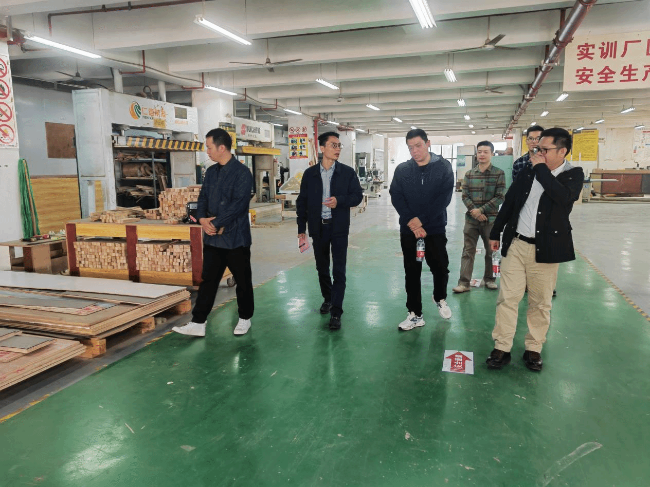 专家组走访学校实训大棚2楼家具艺术设计专业现代学徒制基地